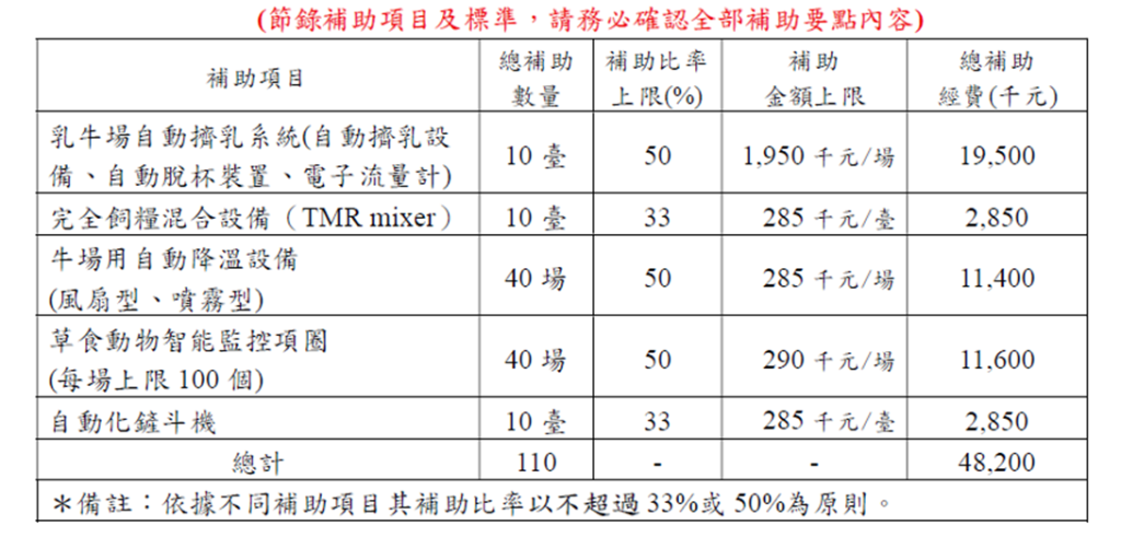 一、依據:農業部為輔導養牛畜牧場強化基礎設施,強化養牛產業畜牧場經營韌性,導入淨零智慧循環永續設備,爰透過財團法人中央畜產會(以下簡稱本會)補助養牛產業導入淨零智慧循環永續設備(畜牧生產自動化、省工設備),以協助農民因應極端氣候衝擊及淨零排放政策,以推動養牛產業畜牧場永續經營,同時協助養牛產業提升生產效率。